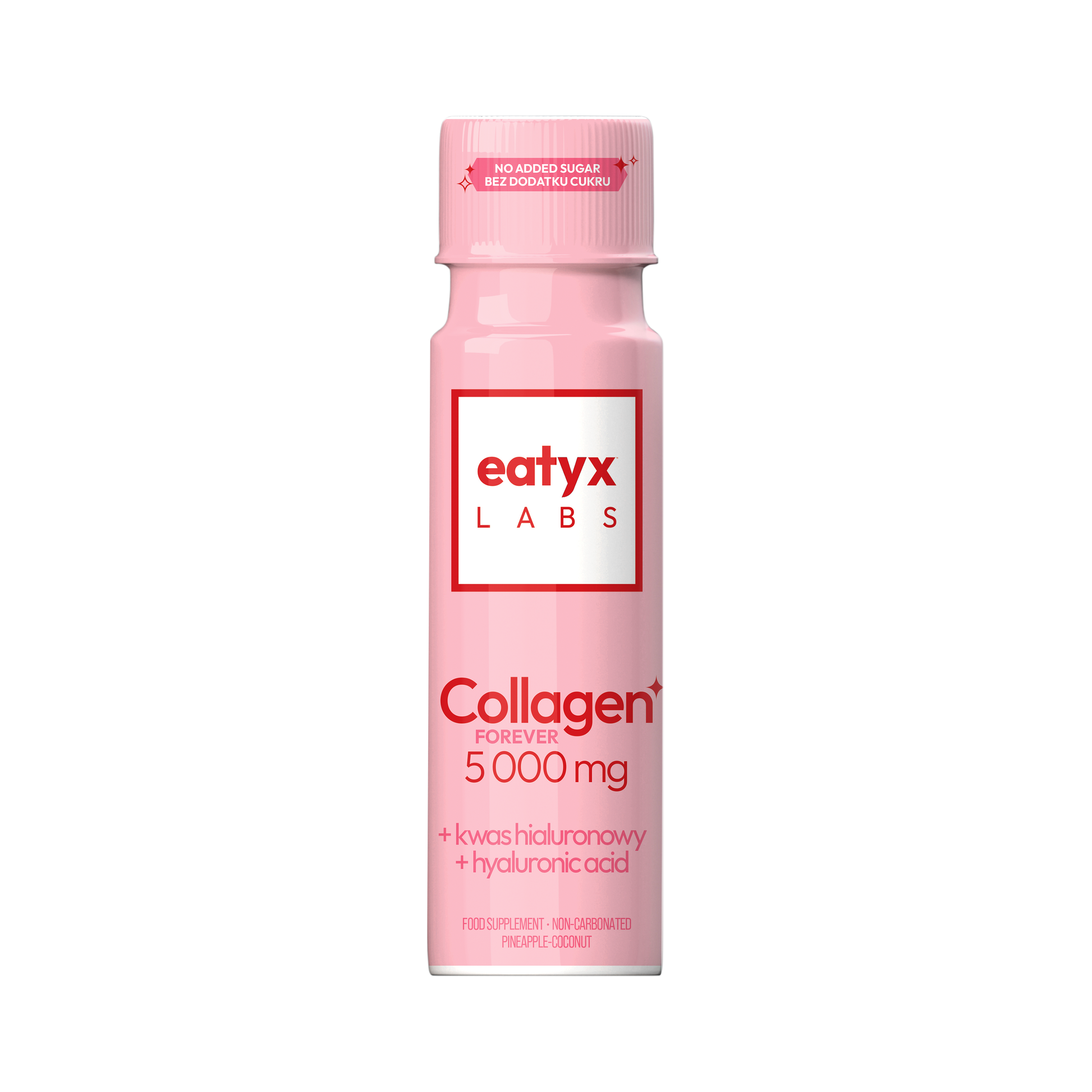 eatyx LABS Collagen Forever 5 000 mg to suplement diety w formie płynu o smaku ananasa i kokosa. Zawiera wysoką dawkę kolagenu wołowego, wzbogacony o kwas hialuronowy, cynk, niacynę i biotynę dla synergii działania i holistycznego podejścia.