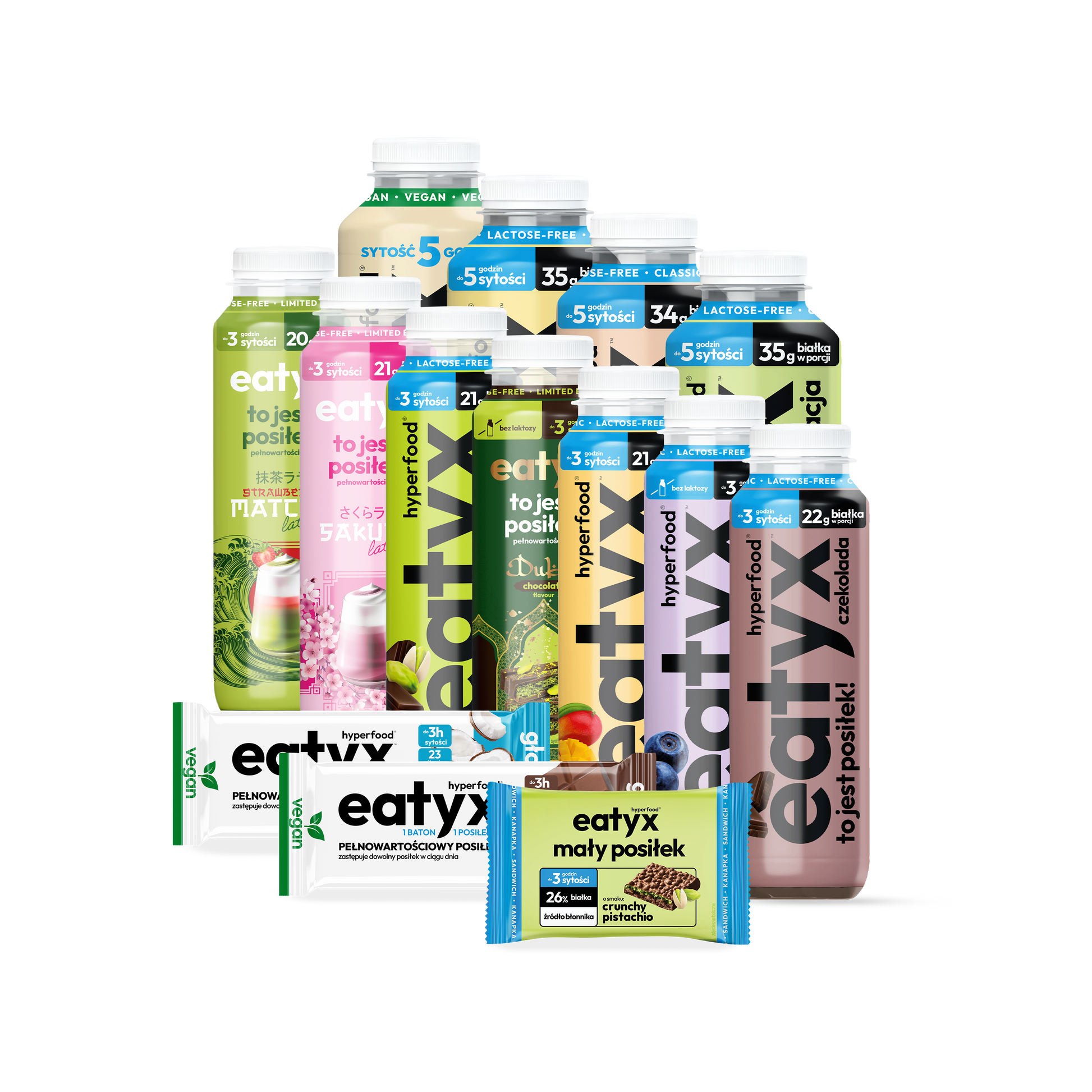 - posiłek w płynie 300 ml (bez laktozy i glutenu): Sakura Latte, Strawberry matcha latte, Dubajska czekolada, Czekolada, Śmietankowa jagoda, Pistacjowa czekolada, Mango,